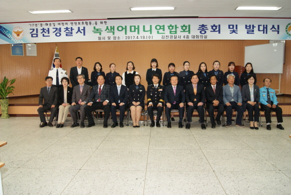 |  | | | ⓒ 김천신문 | | 김천경찰서는 지난 19일 경찰서 4층 대회의실에서 2017년도 녹색어머니연합회 발대식을 가졌다.