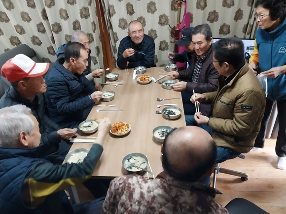 아포읍 바르게살기운동위원회는 지난 5일 금요일 국사1리 경로당 앞에서 추운 날씨에도 불구하고 아침 일찍부터 읍내 경로당에 떡국떡을 배부하고, 떡국을 정성스럽게 끓여 어르신들께 대접하여 주위를 훈훈하게 했다.
