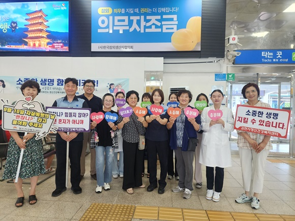 김천시는 자살 예방의 날(9월 10일)을 맞아 지난 10일과 11일 김천역 이용객과 시민을 대상으로 자살 예방 합동 캠페인을 시행하였다.