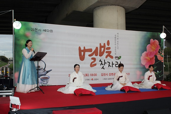 김천시예다회가 9월 13일(토) 오후 6시, 김천시 강변공원 체육시설 부근에서 ‘별빛 찻자리’ 행사를 열었다. 이번 행사는 제35회 경북도민생활체육대축전의 성공을 기원하며, 차 향기와 함께 가을 정취를 나누는 시민 화합의 장으로 마련됐다.