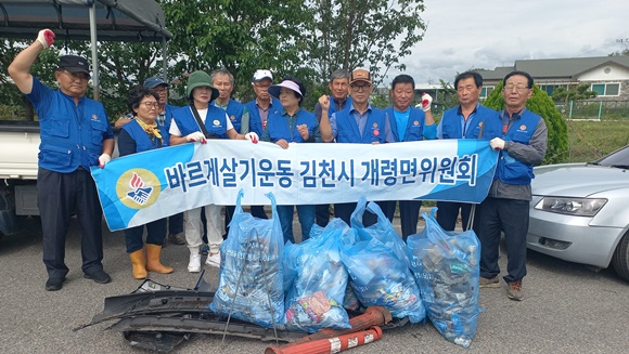 바르게살기운동 김천시 개령면 위원회 회원들은 지난 19일 개령면 서부교차로 일원에서 환경정비 활동을 실시했다.