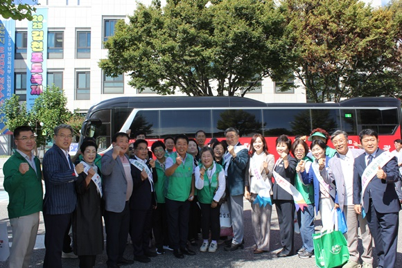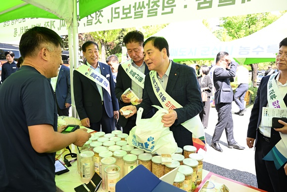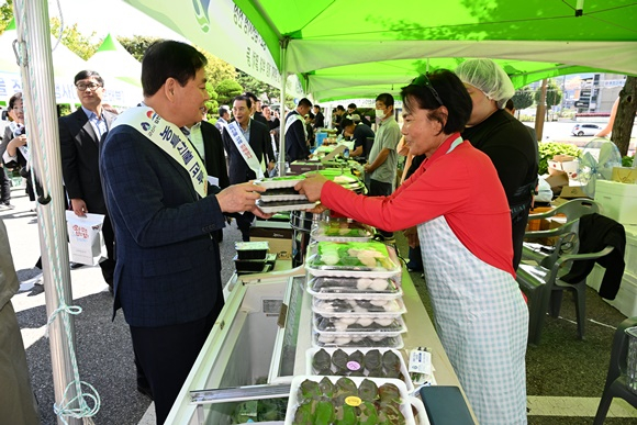 김천시는 9월 23일 자매도시 군산시를 초청하여 시청 전정에서 자매도시 군산시의 농수특산물 직거래 행사를 성황리에 개최했다.