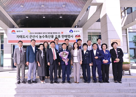 김천시의회는 9월 23일, 군산시 농수특산물 교류 판매행사를 위해 방문하는 군산시의회 의원 및 직원들을 맞아 환영행사를 열고 양 의회 간 교류와 우의를 다지는 뜻깊은 시간을 가졌다.