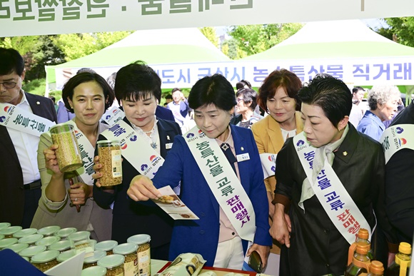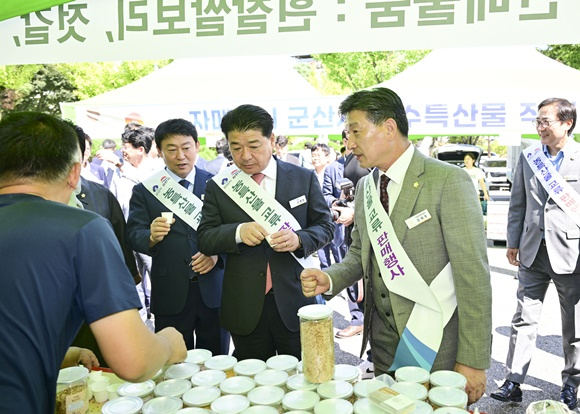 간담회를 마치고 김천시의원들과 군산시의회 방문단은 김천시청 광장에마련된 군산시 농수특산물 홍보 및 판매 행사에 참석했다. 의원들은 행사장을 찾은 시민들과 관계자들을 격려하며, 군산의 우수한 농수특산물이 널리 알려질 수 있도록 힘을 보탰다.