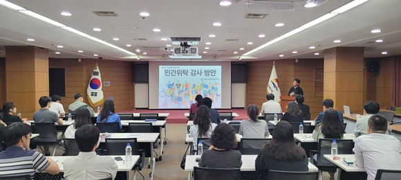 김천시는 지난 24일 시청 2층 회의실에서 민간위탁 담당자 30여 명을 대상으로 민간위탁사무 담당자 역량 강화 교육을 실시했다.