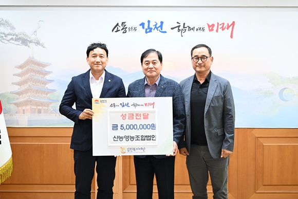 농산물 생산과 유통을 기반으로 성장해 온 산농영농조합법인은 유통센터를 확대하며 농산물 시장에 활로를 개척하고 있을 뿐 아니라, 주민을 위한 나눔 활동에도 꾸준히 동참하여 지역사회의 귀감이 되고 있다. 이번 성금도 취약계층 및 저소득 가정과 한가위의 온정을 나누고자 마련된 것이다. 여종현 대표이사는 “신축 유통센터 개소로 지역 농산물 육성을 위한 기반이 마련된 것을 기념하고, 추석을 맞아 어려운 이웃들에게 도움을 드리고자 성금 기탁을 준비했다”라며, “앞으로도 나눔의 가치를 실천하며 지역사회와 함께 성장하는 법인이 되겠다”라고 전했다. 배낙호 김천복지재단 이사장은 “바쁜 시기에도 소외된 이웃을 먼저 생각해 주신 따뜻한 마음에 깊이 감사드린다”라며, “이번 기탁이 어려운 이웃에게는 명절의 따뜻함을 느끼게 하고, 지역사회에는 나눔 문화를 확산하는 계기가 될 것이다”라고 말했다. 한편, 기탁된 성금은 관내 독거노인과 경제적으로 어려운 취약 가정 등에 전달되어 이들이 따뜻하고 풍성한 한가위를 보낼 수 있도록 지원될 예정이다.