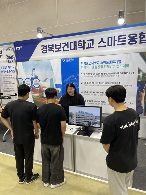 경북보건대학교 스마트융합학부는 ‘2025 구미코 항공방위물류박람회(GADLEX)’ 부스에서 스마트물류 특화 교육과 지역 물류산업 인재양성 성과를 홍보했다.