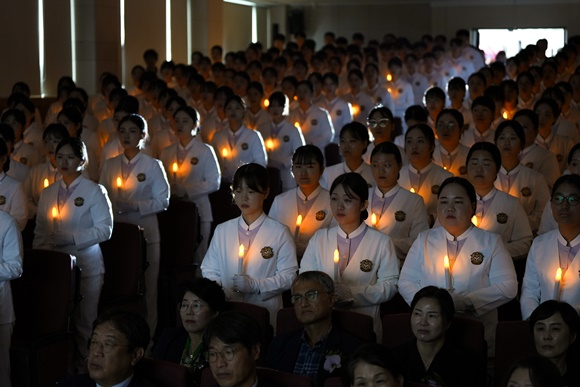 간호학부 학생들이 촛불을 밝히며 환자의 곁을 지키는 전문 간호인이 될 것을 엄숙히 맹세했다.