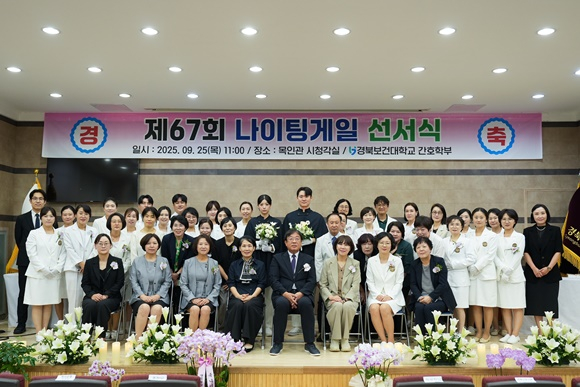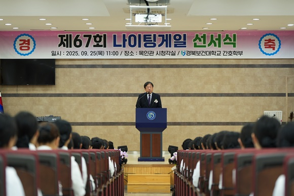 경북보건대학교는 9월 25일 교내 목인관 시청각실에서‘제67회 나이팅게일 선서식을 성대하게 개최했다. 이번 선서식에는 간호학부 2학년 재학생 240명이 참석해 미래의 전문 간호인으로서의 소명과 윤리를 엄숙히 다짐했다.