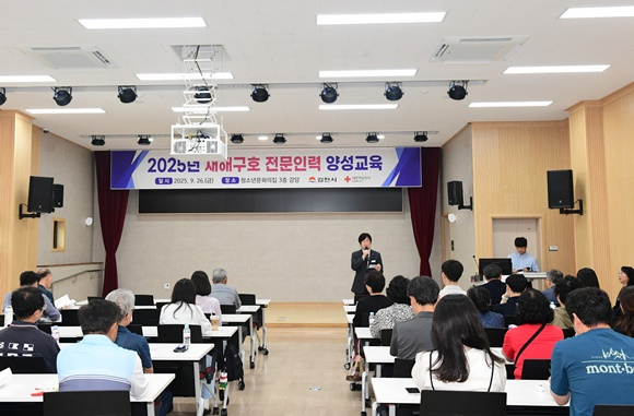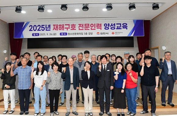김천시는 지난 26일 각종 재난 발생 시 신속하고 체계적인 구호 활동을 지원하기 위해 ‘2025년 재해구호 전문인력 양성교육’을 청소년문화의집 3층 강당에서 실시했다.