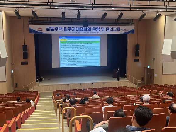 이번 교육은 공동주택 관리의 투명성과 효율성을 높이고, 화재와 범죄 등 안전사고 예방을 통해 입주민의 쾌적한 주거 환경을 조성하기 위해 마련됐다. 24일 김천시립율곡도서관 율곡홀에서 진행된 ‘2025년 공동주택 입주자대표회의 운영·윤리 교육’에는 관내 의무관리대상 공동주택 58개 단지 입주자대표회의 구성원이 참석했다. 강의를 맡은 중앙공동주택관리지원센터 권오경 전문 강사는 입주자대표회의 구성원들이 직무 수행에 필요한 법령과 규정을 체계적으로 익힐 수 있도록 △공동주택 관리에 관한 법령 및 관리규약에 따른 윤리·운영 사항 △사업자 선정지침 및 장기수선계획 수립 등을 교육했다.