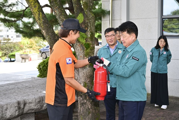 김천시의회(의장 나영민)가 9월 29일 오후 2시 의회 청사에서 김천소방서 대광119안전센터와 합동소방훈련을 진행했다. 이번 훈련은 화재 등 비상 상황에 대한 의회 직원들의 신속한 대응 능력을 높이기 위해 마련됐다.