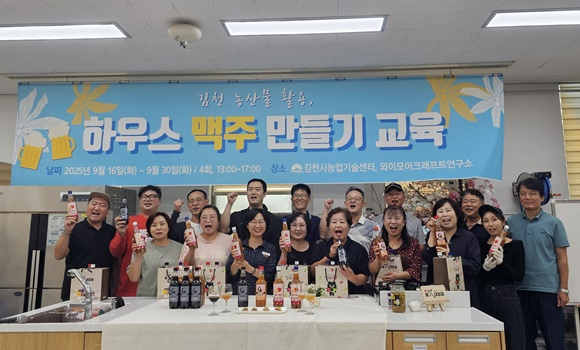김천시는 농업기술센터에서 9월 16일부터 총 4회에 걸쳐 김천 자두, 포도 등 지역 농산물을 활용한 ‘김천 농산물 활용, 하우스 맥주 만들기 교육’을 실시했으며, 지난 30일 수료식을 개최했다.