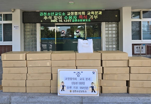 이날 기부식에는 교정협의회 교육분과 신동현 위원의 후원으로 송편 950인분이 김천소년교도소로 기부되었으며, 신동현 위원은 “교정시설에서 가족과 떨어져 추석 명절을 맞이하는 수용자들에게 사회의 따뜻한 정이 담긴 송편이 조금이나마 위로가 되길 바라는 마음으로 준비했다.”고 전했다.