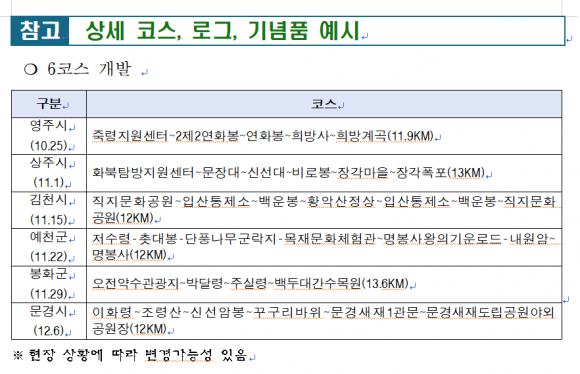 경상북도는 백두대간권 6개 시군(김천시, 영주시, 상주시, 문경시, 예천군, 봉화군)과 손을 맞잡고 백두대간 산림관광 공동마케팅 사업에 본격적으로 나선다.