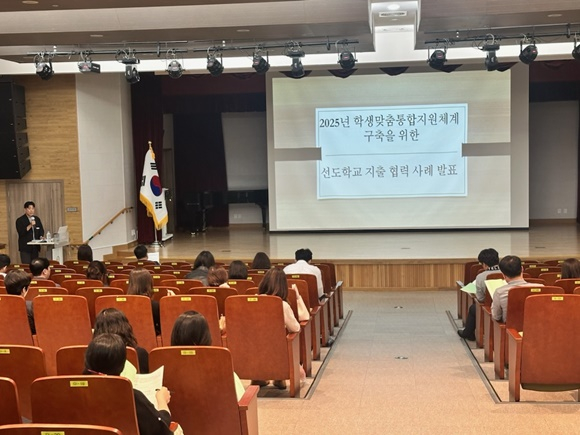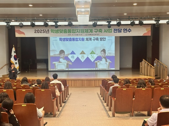 경상북도 김천교육지원청은 10월 13일 월요일, 김천학생문화예술센터 드림마루에서 관내 52개 초‧중‧고등학교 행정실장 및 업무담당자를 대상으로 2025년 학생맞춤통합지원체계 구축을 위한 전달 연수를 개최하였다.