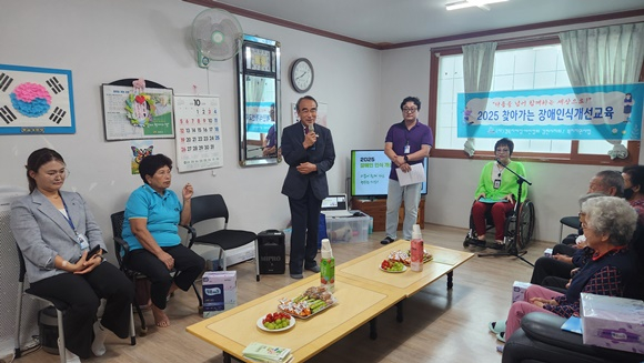 (사)경북지체장애인협회 김천시지회(지회장 김길영)는 15일 김천시 덕곡동 무실경로당에서 지역주민 30여 명을 대상으로 올해 마지막 “찾아가는 장애인식개선교육 및 캠페인”을 실시하였다.