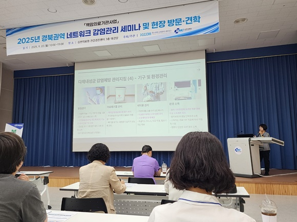 지역책임의료기관 역할을 수행 중인 김천의료원은 지난 9월 22일(월) 김천의료원 건강검진센터 3층 대강당에서 지역사회 보건의료 종사자 교육사업으로 「2025년 경북권역 네트워크 감염관리 세미나 및 현장 방문·견학 프로그램」을 개최했다.