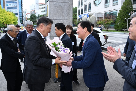 1975년 자매도시 결연 이후 50년간 이어온 양 도시의 우정과 협력의 발자취를 되새기고, 미래 지향적 교류 발전을 다짐하기 위해 나나오시에서는 차타니 요시타카 시장을 단장으로 다케모토 분페이 나나오- 前시장, 민간교류단체 대표 등 15명이 방문했다.