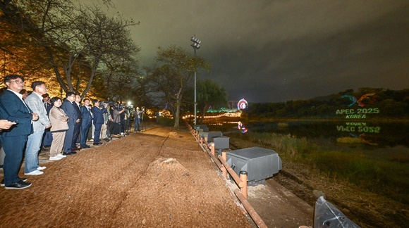 PRS 정상 숙소 주변의 도로변 및 호반 산책로에는 황금도시 경주의 이미지를 담은 금빛 조명을 적용하여 안전성과 심미성을 동시에 확보해 APEC 정상회의의 품격을 한층 높여줄 것으로 기대된다.