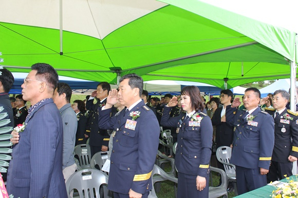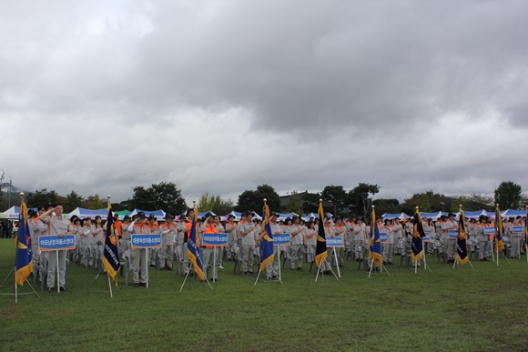 행사는 오전 10시 50분 식전행사를 시작으로 △대장 및 기수 입장 도열 △국민의례 △내빈소개 △개회선언 및 대회사 △격려사 △축사 △선서식 △단체사진 촬영 등의 순서로 진행됐다.