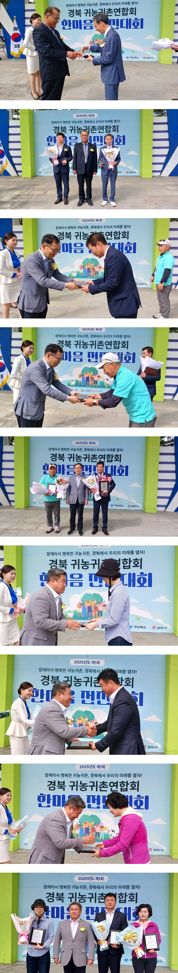 시상식에서는 경북도지사상, 도의회 의장상, 전국회장상, 감사패, 우수연합회상 등이 수여되어 귀농귀촌 활성화에 기여한 유공자들의 노고를 치하했다.
