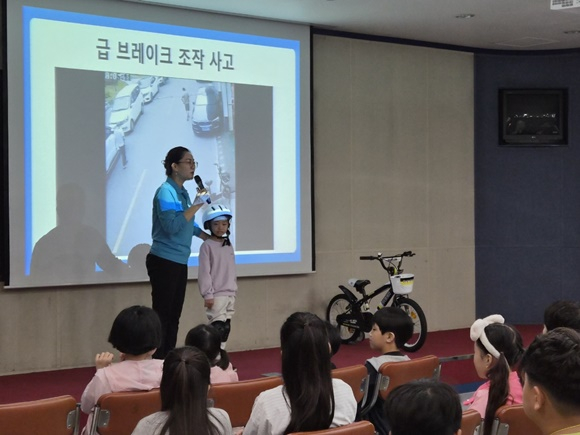 이번 교육에서는 교통안전 전문 강사를 초청하여 보호장구 착용법, 자전거 운행 시 사각지대의 위험성 등 자전거 운행 시 지켜야 할 안전 사항에 대한 교육을 진행했으며, 최근 브레이크가 없는 ‘픽시 자전거’의 위험성을 알리는 등 어린이들이 올바른 자전거 이용 습관을 익힐 수 있는 시간을 가졌다.