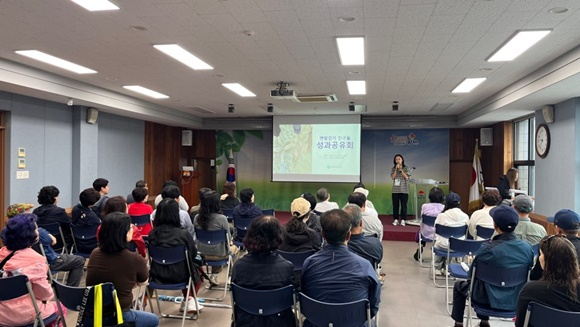 이번 성과 공유회는 지난 3월 맨발걷기 교실에서 이론과 실습을 익힌 주민들이 자발적으로 결성한 건강 증진 동아리인 ‘맨발걷기 친구들’이 4월부터 9월까지 꾸준히 맨발 걷기를 실천하며 얻은 값진 성과를 공유하는 자리였다. 이들은 비대면 오픈 채팅방을 통해 총 442회에 달하는 걷기를 서로 독려하며 활발한 활동을 이어갔다. 또한, 본인의 혈압을 알고 물 마시기를 생활화하는 등 통합건강증진사업과 연계하여 더욱 건강한 생활 습관을 만들어 나갔다. ‘맨발걷기 친구들’은 활동 시작 전후로 체성분, 혈액, 혈압, 마음 건강(우울, 불안, 스트레스) 등 다양한 사전·사후 검사를 진행해 객관적인 건강 증진 효과를 측정했다. 매월 평균 20명의 주민이 참여한 결과 참가자들의 평균 체중은 0.7kg, 체지방량은 1.5kg 감소했고, 골격근량은 0.3kg 증가하는 등 긍정적인 신체 변화를 보였다. 또한, 혈압과 혈액검사 수치는 안정적으로 유지되었고, 마음 건강(우울, 불안, 스트레스) 지표 역시 모두 개선되는 방향을 보여 맨발 걷기가 신체적 건강뿐 아니라 정신 건강에도 크게 기여했음을 입증했다. 손중일 건강증진과장은 "이번 성과공유회에서 보여준 주민들의 높은 관심과 참여에 감사드린다.”라며, "앞으로도 주민들의 건강 증진에 실질적인 도움이 될 수 있도록 적극적인 사업 추진과 지원을 아끼지 않겠다.”라고 전했다.