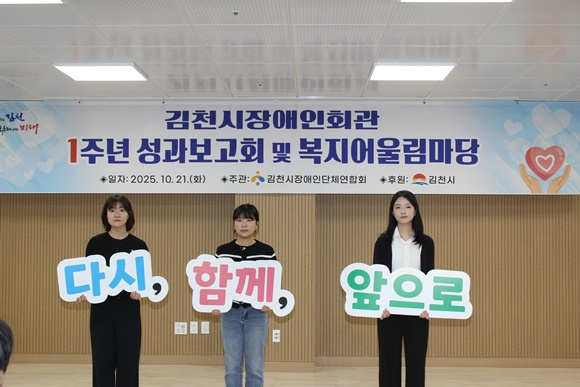 이어 배낙호 김천시장과 나영민 시의회의장, 박선하‧최병근‧조용진 경북도의원이 참석해 축사를 전하며 장애인 복지 향상을 위한 적극적인 지원과 소통을 약속했다. 참석자들은 “김천장애인회관이 지역 장애인의 자립과 복지 증진의 중심 역할을 해왔다”며 지난 1년의 성과를 함께 축하했다.