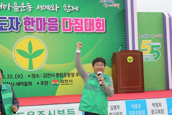 김천시새마을회(회장 김덕수)는 10월 22일 10시 김천종합스포츠타운 주차장에서 ‘새출발! 새도약! 새마을지도자 한마음다짐대회’를 성황리에 개최했다.