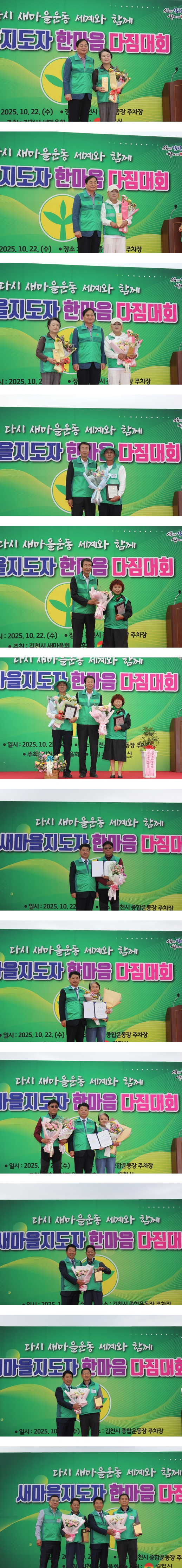 김덕수 회장은 대회사를 통해 “우리의 작은 실천이 모여 김천의 내일을 밝히고 있다”며 “이번 한마음다짐대회는 서로의 노고를 격려하고, 모두가 새마을정신으로 맺어진 가족임을 확인하는 뜻깊은 자리”라고 말했다. 또한 “변화의 시대 속에서도 새마을정신 근면·자조·협동을 이어가며, 깨끗하고 따뜻한 김천을 만들어가는 데 함께해 주신 모든 분들께 감사드린다”고 전했다.