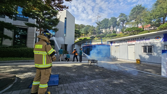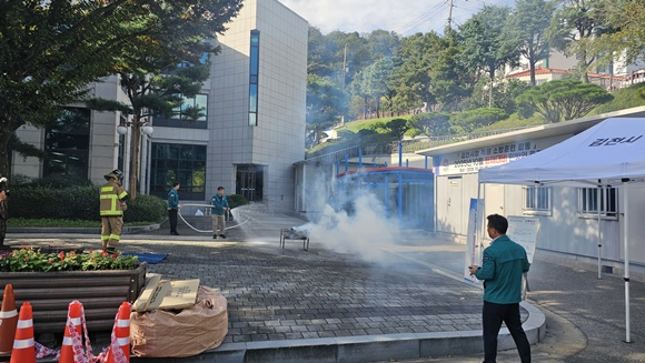 이번 훈련은 전산장비로 인한 화재 발생 상황을 가정하고, 전기화재에 대응할 수 있는 가스식 소화기를 사용하여 화재 발생 초기 단계에서 신속하게 진압하는 능력을 향상하는 데 초점을 맞춰 진행됐다.