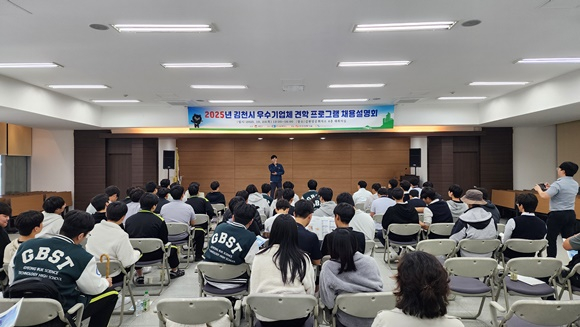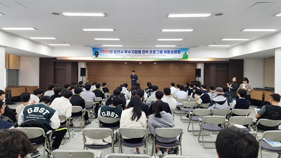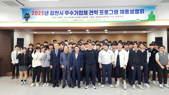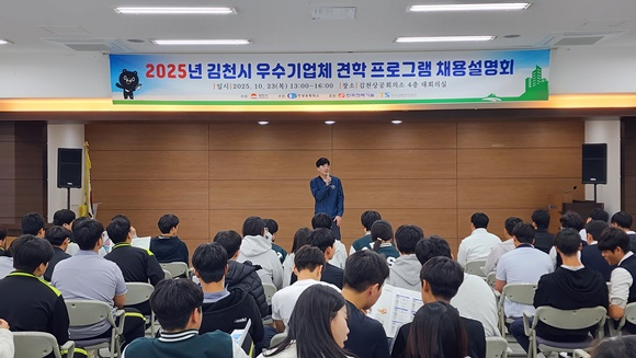 김천상공회의소(회장 안용우)는 지난 10월 23일 오후 1시 본 회의소 4층 대회의실에서 2025년 김천시 우수기업체 견학프로그램의 일환으로 채용설명회 행사를 개최했다.