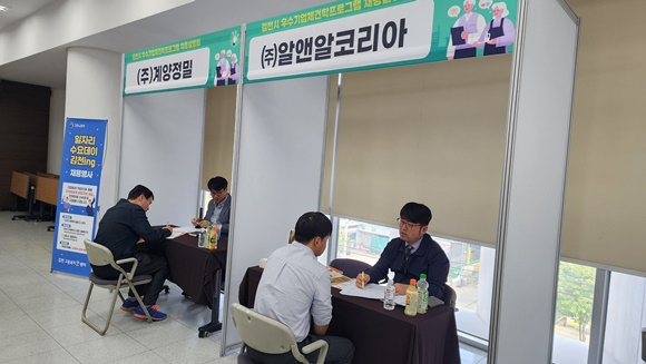 주요참여기업들로는 코오롱이앤피(주), 코오롱생명과학(주), ㈜우진산전, ㈜계양정밀, ㈜태동테크, ㈜알앤알코리아 등 관내 우수기업 6개사가 자세한 기업설명과 함께 면접도 진행했다.