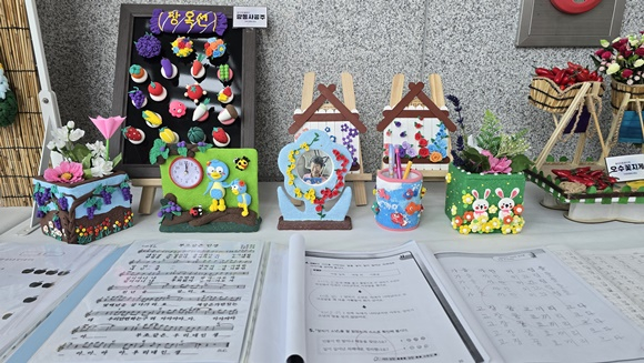 이번 전시회는 문화회관 로비에 매듭팔찌, 퀄링, 종이접기, 플레이콘 꾸미기, 무드등 만들기와 어르신 시화, 문해교육 작품 등 다양한 그림, 동아리활동 사진, 각종 공에 작품들로 이루어져 있으며 특히 포토존을 설치하는 등 이번 노인의 날 행사 분위기 조성과 볼거리를 제공하고 있다