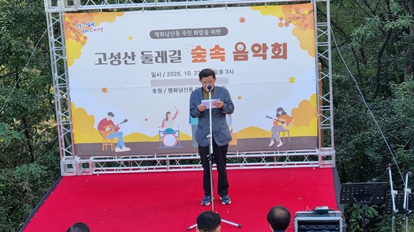 김천시에서 처음으로 열린 ‘고성산 둘레길 숲속 음악회’가 지난 10월 23일, 고성산 둘레길 숲속 전망대에서 300여 명의 시민이 함께한 가운데 성황리에 개최됐다.
