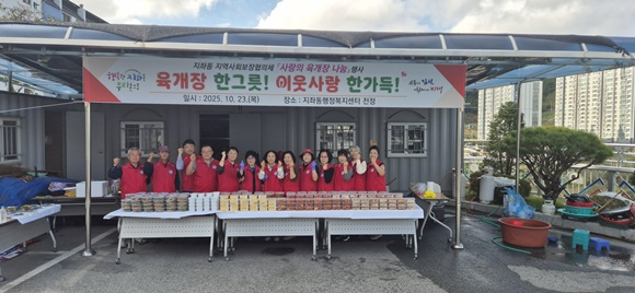 김천시 지좌동 지역사회보장협의체(위원장 정경순)는 23일 오전 9시부터 행정복지센터 전정에서 「사랑의 육개장 나눔」 행사를 가졌다.