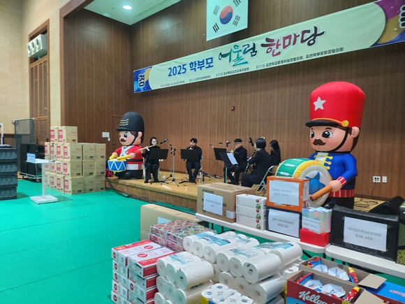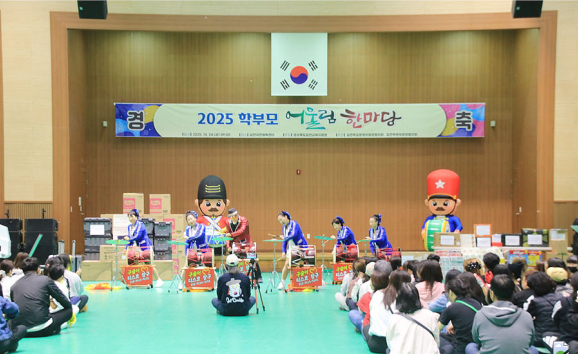 식전행사로 김천시교향악단 목관5중주의 연주와 구슬이 디스코 장구 난타공연이 흥겨운 박수 속에 분위기를 띄우며 행사의 막을 열었다. 이어 “삶이 아름답고 희망을 주는 학부모님들을 위한 2025 학부모 어울림 한마당 개회” 선언으로 본격적인 행사가 시작됐다.