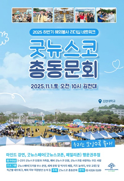 총동문회에는 국내외 굿뉴스코 동문 약 1,500여 명이 참석할 예정으로, 해외봉사로 맺은 인연을 다시 이어가며 교류의 장이 될 전망이다. ‘굿뉴스코 해외봉사단(Good News Corps)’은 국제청소년연합(IYF, 설립자 박옥수)이 운영하는 해외봉사 프로그램으로, 2002년 10개국에 14명의 단원을 파견하며 시작됐다. 현재까지 102개국에 1만여 명이 넘는 청년들이 참여해 교육, 보건, 지역개발, 문화교류 등 다양한 분야에서 활동했으며, 귀국 후에도 사회 각계각층에서 활발히 활동하고 있다. 총동문회는 단순한 친목 행사를 넘어 ▲세대 간 네트워킹 ▲해외봉사 경험을 통한 성장 사례 공유 ▲직군별 전문 네트워크 구축 ▲해외 지부 지원 방안 논의 등 실질적인 교류의 장으로 진행된다. 이를 통해 해외봉사 경험을 사회적 가치로 확장하고, 지속 가능한 글로벌 네트워크를 구축하는 계기가 될 전망이다. 특히, 총동문회와 함께 열리는 ‘굿뉴스페어(Good News Fair)’ 프로그램에서는 국가별 문화 부스가 운영되어 세계 각국의 전통과 문화를 체험할 수 있다. 또한 세계 음식 존, 가족 체험 공간, 키즈 놀이터 등도 마련돼 가족 단위 참가자들이 함께 즐길 수 있는 축제 분위기를 더한다. 총동문회 관계자는 “이번 행사는 해외봉사로 맺은 인연을 잇고, 청년들의 도전이 글로벌 연대로 이어지는 뜻깊은 자리가 될 것”이라고 말했다.