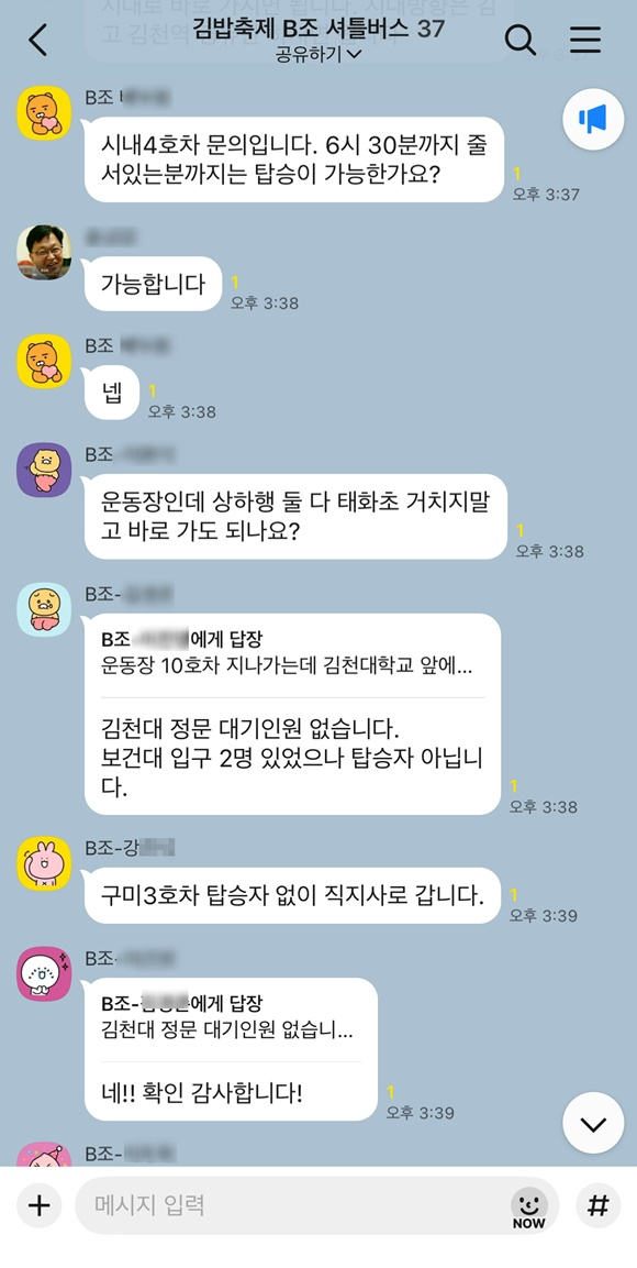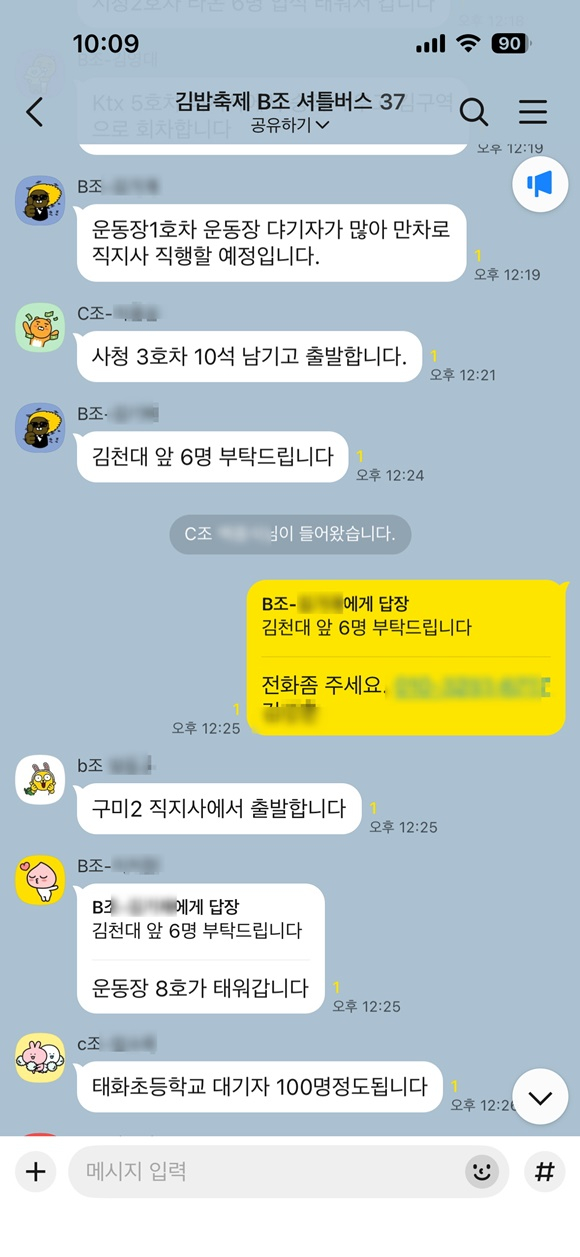 김밥축제 장소는 도심과 거리가 상당히 떨어져 있고 진입도로가 일방통행으로 구조적인 한계를 지니고 있다. 축제 방문객이 15만 명 이상으로 예상되는 상황에서 이를 해결하기 위해 김천시는 셔틀버스 중심 교통 운영, 진입 도로 구간 버스전용차로 지정, 그리고 오픈톡 기반 실시간 정보 공유 체계를 결합해 효율적인 교통 대책을 추진했다. 특히, 이번에 도입된 오픈톡 실시간 정보 공유 체계는 각 노선·주차장 담당자와 통제 요원, 노선 통제·주정차 단속 등 현장 인력이 QR코드로 개설된 오픈채팅방에 참여하여 현장 상황을 공유하는 방식으로 운영되었다.
