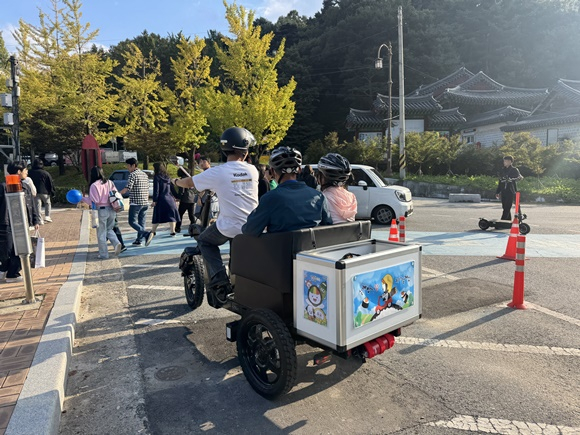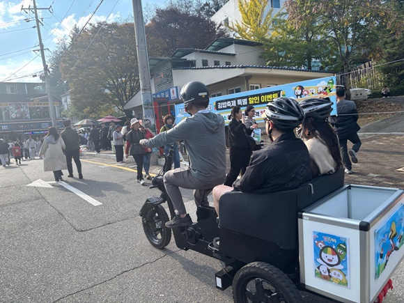 이번 김천김밥축제에서는 총 8대의 화물용 전기자전거를 투입하여 행사 물품을 운반하고, 길거리에 버려진 쓰레기를 청소하는 등 축제 전 과정에서 다양한 역할을 수행했다. 특히, 축제 중 셔틀버스 정류장과 메인 행사장을 오가며 관광객을 수송하는 친환경 이동 수단을 운영하여 노약자와 어린이를 동반한 가족 단위 방문객들에게 큰 호응을 얻었다.