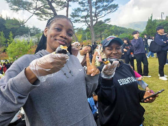 이번 축제에는 김천대학교 재학생, 졸업생, 교수진이 함께 참여해 서로의 경험을 공유하고 교류하는 뜻깊은 시간을 가졌다. 특히 아시아, 아프리카, 남미, 오세아니아 등 다양한 대륙에서 온 유학생 80여 명이 부스를 방문해 K-컬처와 K-푸드에 대한 높은 관심을 보이며 지역 특화 김밥의 매력을 직접 체험했다.