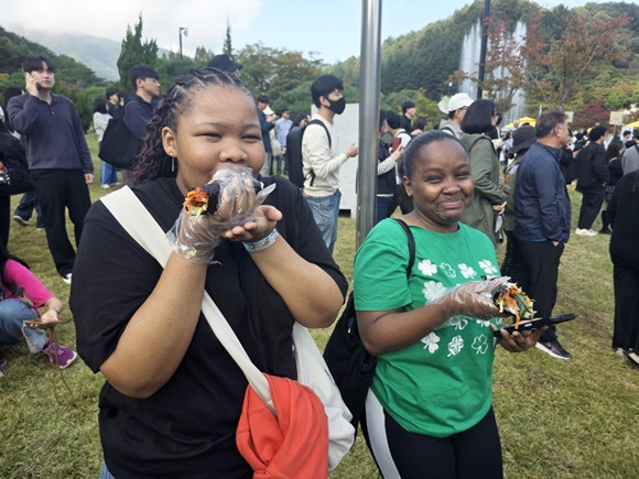 유학생들은 김천의 대표 식재료를 활용한 김밥을 시식하며 “김천만의 맛과 정(情)을 느낄 수 있었다”고 소감을 전했다.