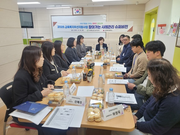 경상북도 김천교육지원청(교육장 모태화)은 10월 30일, 김천동부초등학교 교육복지사 실에서 교육복지우선지원사업의 일환으로 사례관리의 전문성 강화를 위한 슈퍼비전을 개최하였다.