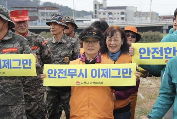 김천시는 10월 30일 김천대교 인근 감천 하천변에서 대규모 풍수해 재난 발생 상황을 가정한 2025년 안전한국훈련을 실시했다. 토론훈련 및 불시 현장훈련에는 김천소방서, 김천경찰서, KT(김천지점), 한국전기안전공사, 한국전력 등 13개 유관기관, 의용소방대, 자율방재단, 해병대김천시전우회, 안실연 등 5개 민간단체, 지좌동 및 양금동 지역 주민, 국민체험단 등 350여명이 참여한 훈련으로 풍수해 재난 상황을 가정하여 현장훈련을 실시했다.