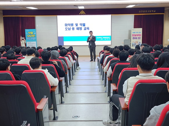 김천시(시장 배낙호)는 최근 사회적 문제로 대두되고 있는 마약류 범죄의 심각성을 알리고 청소년들이 마약의 위험성을 인식할 수 있도록 관내 고등학생 500여 명을 대상으로 ‘마약 근절 및 약물 오남용 예방 교육’을 실시했다.