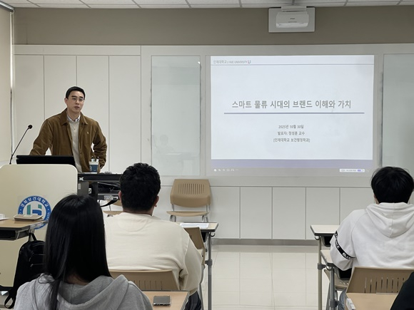 이번 특강에는 인제대학교 정성훈 교수가 초청되어“기업 채용트렌드 최신 동향 및 취업전략 그리고 합격 면접 스킬, 스마트물류 시대의 브랜드 이해와 가치, 조직생활 전략”등 포괄적인 내용으로 강연을 진행했다. 정 교수는“스마트물류는 단순한 운송 산업을 넘어 신뢰·가치·기술을 고객에게 전달하는 지능형 서비스 산업으로 진화하고 있다”며,“브랜드는 이제 마케팅의 부속 개념이 아니라 산업 경쟁력을 결정짓는 핵심 자산(Key Asset)으로 자리 잡고 있다”고 강조했다.