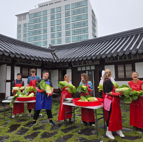 한옥 스테이와 김장 체험 ― 진짜 한국을 만나다이번 교류의 하이라이트는 전주 한옥마을에서의 한옥 스테이였다. 헝가리 학생들은 온돌방 숙박을 통해 한국의 전통 주거 문화를 직접 체험했으며, 김장 체험에서는 김치 담그기의 일부 과정을 직접 체험하며 한국의 따뜻한 정(情)과 협동의 가치를 배웠다. 이 밖에도 전통시장 탐방, 한식 조리 체험, 지역문화 예술공방 방문 등 다채로운 일정이 이어져 한층 풍부한 교류 경험을 선사했다.