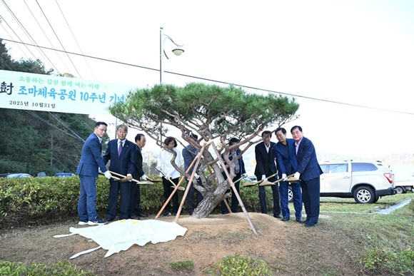 이번 행사는 조마 체육공원이 조성된 이후 면민들의 생활체육 중심지로 자리 잡으며, 지난 10년간의 발전과 화합을 기념하기 위해 마련됐다. 특히 기념 식수로 식재된 소나무는 마을 내 주민 불편으로 이식이 요청된 수목으로, 조마면의 ‘배려와 상생’의 의미를 담아 새롭게 심어 더욱 뜻깊은 상징이 되었다.