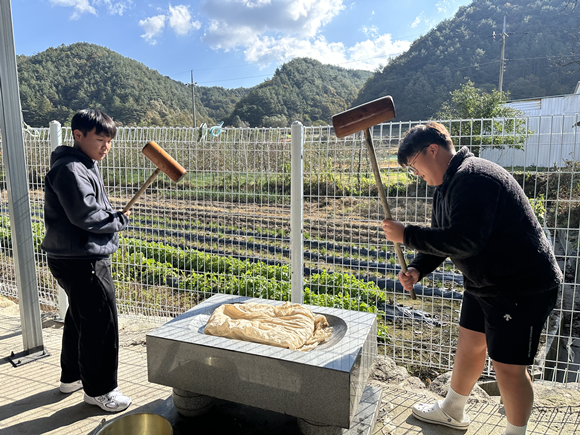 이어서 진행된 인절미 만들기 체험에서는 학생들이 직접 떡을 치대고, 고소한 콩가루를 입히는 과정을 경험하였다. 학생들은 협동의 중요성 및 교사와의 소통의 방법도 터득하였다.